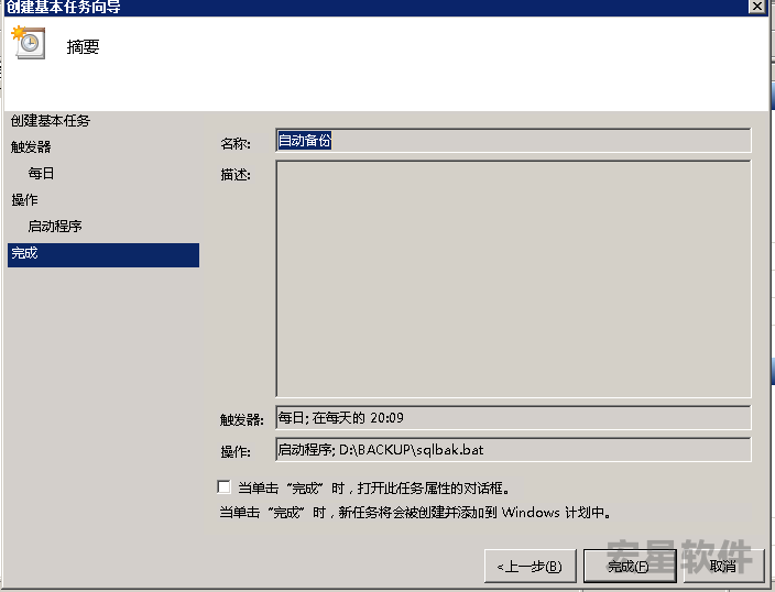 8、点完成,这样自动备份的计划任务就执行好了。